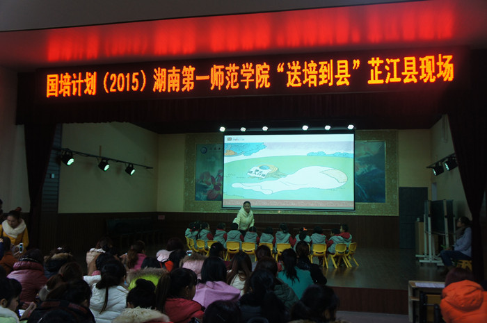 芷江“送培到县”活动由我校幼师国培首席专家万湘桂副教授带队,授课专家由长沙市岳麓区第二幼儿园园长向松梅、骨干教师刘宇,中南大学幼儿园骨干教师曾兰,芷江第一幼儿园骨干教师胡俊,芷江第二幼儿园园长周利群、骨干教师马晴晴等人组成。安乡“送培到县”活动由我校袁小平教授带队,授课专家由长沙市岳麓区第八幼儿园园长彭青青、长沙高新区幼儿园副园长龚苗、中南大学幼儿园骨干教师邹勇、陈孟、安乡中心幼儿园骨干教师卢李等人组成。两地共有800多名幼儿教师参加了这次活动。