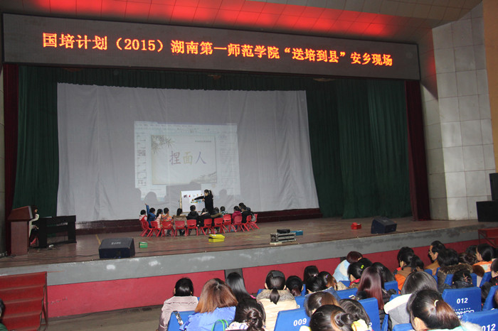2015年“国培计划”——“送培到县”示范性培训是湖南省教育厅为落实国务院《乡村教师支持计划(2015-2020)》而设立的一项中小学与幼儿教师培训的重点项目,也是加强中小学与幼儿教师队伍建设,促进基础教育均衡发展的一项重要举措。我校送培团队以“突出师德、立足课堂、服务课改、服务教师”为宗旨,采取“师德巡讲、同题异构、互动研讨、专家讲座”的培训模式,融入新理念、新思想、新方法,对全省9个县幼儿教师分别进行为期2天的集中培训,引导和帮助幼儿园教师从实践中学习,在反思中进步,提高幼儿教师师德水平、教育教学水平和课堂教学效果,并实现对各县“送教下乡”培训工作的示范引领,推动幼儿园教师培训工作科学规范、高效有序开展。