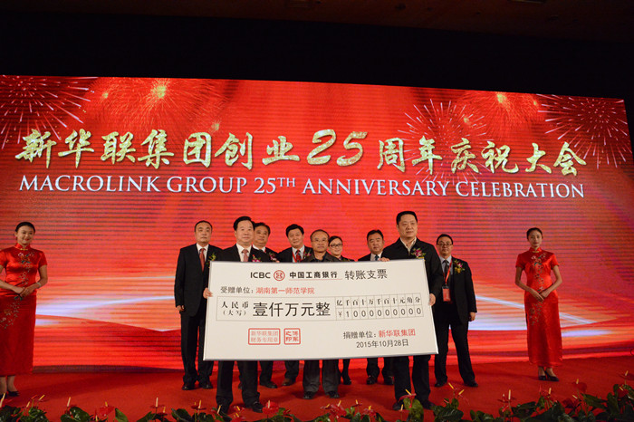 新华联集团于创业25周年之际,向我校捐款1000万元设立助学奖励金,资助优秀贫困大学生,旨在通过持续深化长效回报社会的公益机制,进一步提升企业履行社会责任的能力,更有效地推动国家教育事业的发展,同时也借此不断扩大企业的品牌影响,切实增强集团广大员工的自豪感、责任感和使命感。