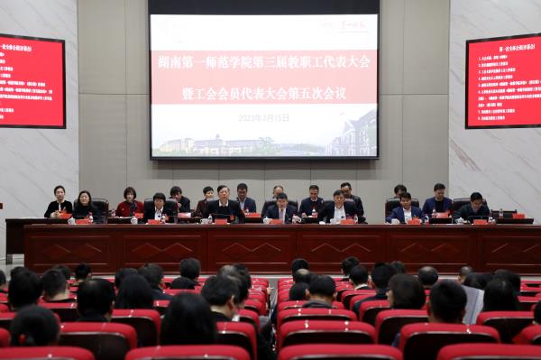 3月15日,我校第三届教职工代表大会暨工会会员代表大会第五次会议在百熙楼228召开。全体在家校领导,教职工和工会会员代表、特邀代表和列席代表等参加会议。
