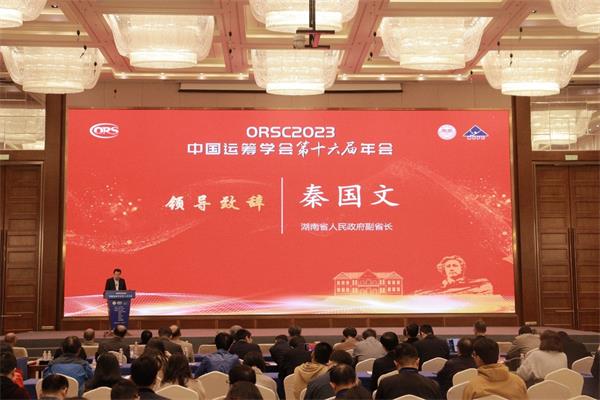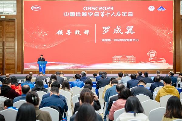 8日上午,大会开幕式隆重举行,湖南省人民政府秦国文副省长出席并致辞。中国科协副主席袁亚湘院士,国家自然科学基金委员会数理学部主任江松院士,中国工业与应用数学学会理事长张平文院士,中国科学院数学与系统科学研究院副院长张平院士,中国运筹学会戴彧虹理事长,湖南省科协党组书记、常务副主席王瑰曙,我校党委书记罗成翼出席开幕式。首届中国运筹学会会士、大会特邀报告人、分论坛报告人,以及来自全国各地的1000余名运筹学及相关领域的专家、学者和研究生、企业界代表等参加了开幕式。开幕式由中国运筹学会秘书长、中国科学院数学与系统科学研究院陈旭瑾研究员主持。