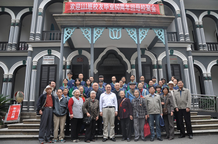 10月9日上午,我校111班十几名校友怀着对母校的深情厚谊,不顾年迈、不辞辛劳,从祖国各地返回母校聚会。111班的校友于1955年元月毕业于我校,已经毕业60周年,今天回校聚会的校友大多数都已年满80周岁,他们当中有知名画家、教授、政府公务员、优秀教师等,在退休之前都在自己的工作岗位上兢兢业业,做出了突出的业绩,为母校增添了荣光。