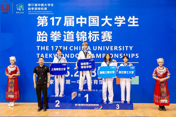 近日,从全国大学生体育赛事的赛场传来好消息。在第17届中国大学生跆拳道锦标赛上,我校选派的两名大学生运动员不畏强手、顽强拼搏、获得佳绩,其中段依可同学勇夺女子甲组46kg冠军,潘鑫同学荣获“优秀运动员”称号。在第16届中国大学生体育舞蹈锦标赛上,我校大学生共获得金牌3枚、银牌5枚、铜牌4枚,取得甲组团体总分第一的优异成绩,并荣获“体育道德风尚奖”。