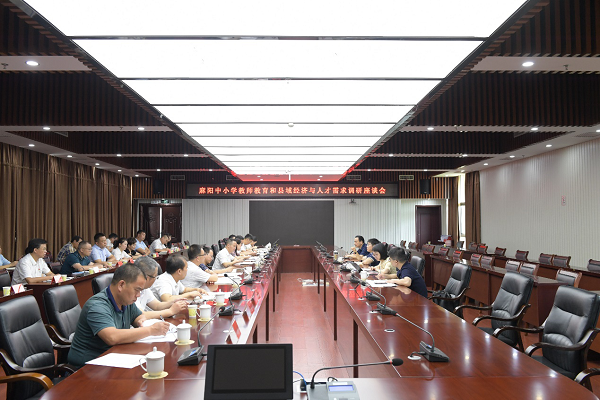 在调研座谈会上,欧阳海峰对我校助力乡村振兴、助推麻阳县经济社会发展表示感谢。欧阳海峰指出,湖南一师师资力量雄厚,办学特色鲜明,希望依托学校的人才智力优势,在教师人才队伍建设、县域经济发展等领域开展深度合作,实现校地共同发展。滕春霞介绍了中小学师资队伍建设指出,根据县内人口出生率逐年大幅下降趋势,预测2027年开始中小学学生人数将大量下滑,乡村教学点急剧减少,估计2~3年逐步消失,中小学教师需求数急剧下降,撤校合并压缩中小学教师编制势在必行。她建议高校专业布局须从人口出生率和国家社会经济发展需求出发,进行超前调整和科学谋划。麻阳县有关部门负责人也就教师人才队伍建设、县域经济发展人才需求情况畅所欲言。他们建议充分发挥湖南一师师资培训的品牌优势、团队优势、组织优势和地域优势,把最优质的师资、最先进的理念、最完善的课程与麻阳县教育系统共享共建,让当地老百姓享受高质量的教育服务。加强校地办学合作,放大“一师附小”品牌效应,让附小优质的办学理念、高效的治理模式、丰富的校园文化、完善的课程体系、优秀的师资团队在麻阳乃至大湘西地区落地生根,开花结果,使“品牌一师”根植于“三湘大地”。