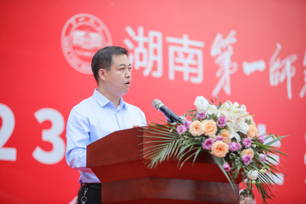 校长胡穗致辞。他向新同学的到来表示热烈的欢迎,期待同学们在一师校园绽放最美的青春,在人生赛道上跑出最好的成绩。他指出,一师建校120年来,以毛泽东、蔡和森、何叔衡等一大批国家栋梁为代表的一代又一代的一师人,在恢弘壮丽的历史图卷和波澜壮阔的时代征程中,用实际行动生动诠释了一师人的责任与担当。同学们选择一师,就是选择传承,选择一师,更是选择未来!