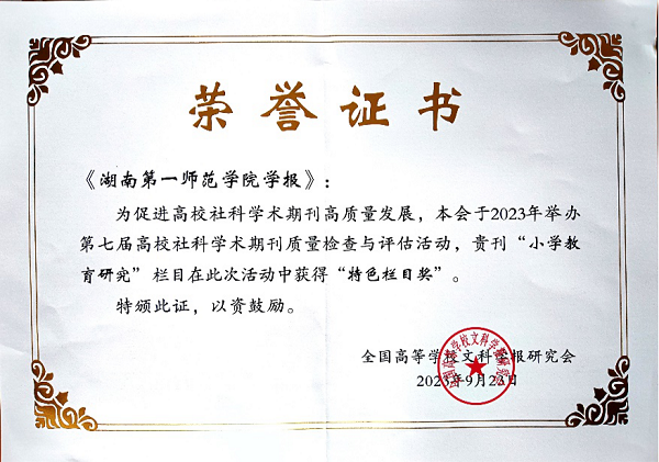 9月22—25日,全国高等学校文科学报研究会九届三次理事会、全国高等学校文科学报研究会成立35周年庆祝大会暨编辑业务培训会在湖北宜昌举行。会议公布了第七届高校社科学术期刊质量检查与评估结果,《Kaiyun官方网站登录入口学报》获得“全国高校质量进步奖”,“小学教育研究”栏目获得“特色栏目奖”。