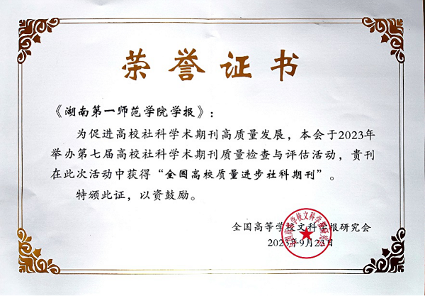近几年,我校学报的影响力、社会认可度不断增强。2019-2022年,学报三次获得湖南省期刊社会效益考核优秀等级,2021年被湖南省委宣传部立项为湖南省“品牌社科期刊”,“小学教育”栏目被湖南省教育厅立项为“品牌栏目”。2020年度学报复合影响因子上升幅度达32%、2022年影响力指数(CI)提升幅度为37%。“毛泽东思想与马克思主义中国化时代化研究”栏目,吸引了北京大学博雅讲席教授顾海良、清华大学特聘教授李捷、肖贵清等20多位知名学者发表学术论文;“小学教育研究”栏目发文作者大部分来自北京师范大学、首都师范大学、华东师范大学等全国重点师范院校。