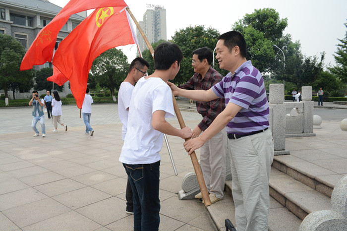 仪式结束后,志愿者们从校领导手中接过鲜红的校旗、团旗,分别奔赴省内外的乡镇基层,开展为期10-15天的实践服务活动。
