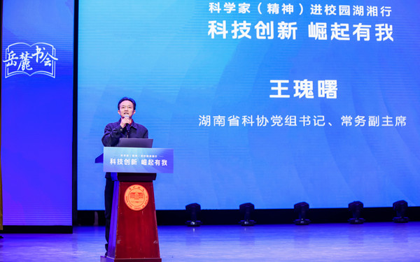 11月22日上午,第二届岳麓书会重点活动之一“科技创新 崛起有我”——科学家(精神)进校园湖湘行活动在我校启动。湖南省科协党组书记、常务副主席王瑰曙,湖南省委宣传部部务会成员、湖南省政府新闻办副主任黄海,湖南省教育厅二级巡视员曾四清,我校党委书记罗成翼等出席启动仪式。