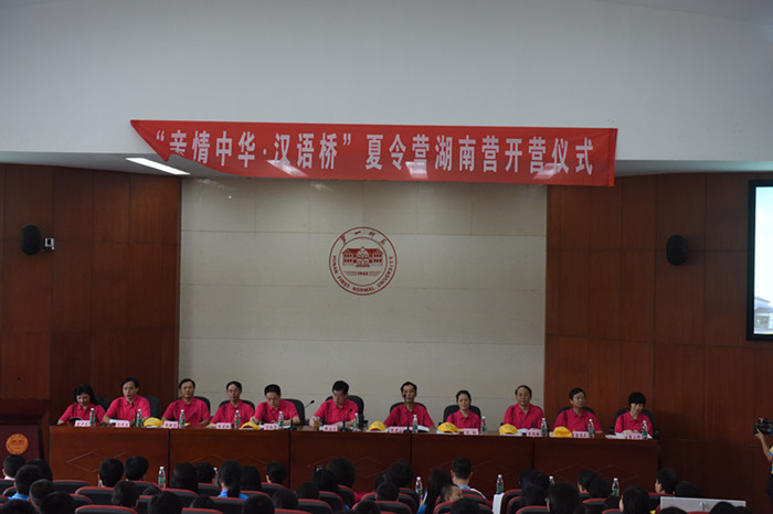 7月6日上午,2015年“亲情中华·汉语桥”夏令营湖南营开营仪式在我校东方红校区视频会议室举行。省委常委、省委秘书长、省人大常委会副主任韩永文,省侨联党委书记朱建山,Kaiyun官方网站登录入口校长肖湘愚、副校长童小娇,省委统战部巡视员刘权,省外侨办副主任张建新,省政协港澳台侨和外事委员会副主任李国雄,省侨联副主席、秘书长孙民生,省教育厅副厅长唐亚武,省文化厅党组副书记、副厅长禹新荣,省侨联兼职副主席、长沙市侨联主席翁少兰等领导出席开营仪式并在主席台就座。