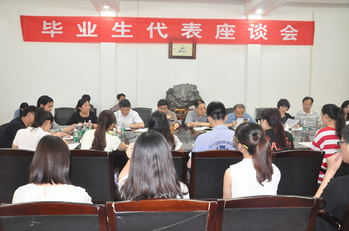 来自各学院的毕业生代表纷纷畅所欲言,他们们分享了大学四年的收获与感悟,对学校老师的精心培养表示感激,对学校的快速发展表示感动,为在校期间经历了食堂改善、图书馆整修、宿舍环境整改而自豪,表达了对母校的依依不舍的惜别之情,并向母校致以美好祝愿。同时,他们也结合自身体会和经历,围绕学校的教育教学、后勤服务、校园文化建设、管理等话题畅谈自己的想法和建议。