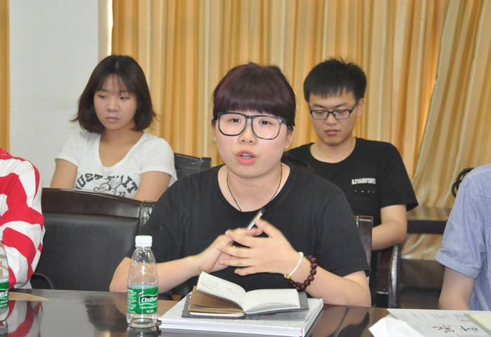 一年后,许梦榕再次来到这间会议室,作为一名外国语学院的毕业生代表参加6月11日在东方红校区会议室举行的2015届毕业生座谈会。校党委书记彭小奇、校长肖湘愚、副校长童小娇、校长助理江正云和学生工作处、保卫处、教务处、招生就业处、后勤处、团委、图书馆的相关负责人以及2015届24名毕业生代表参加了会议。