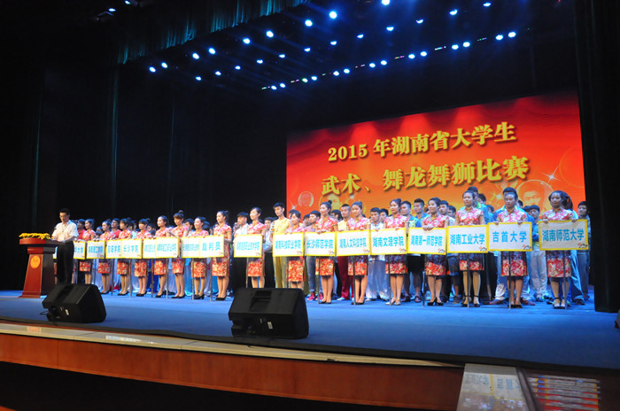 6月4日晚7:00,由我校承办的2015年湖南省大学生武术、舞龙舞狮比赛在我校东方红校区艺术楼大剧院隆重开幕。开幕式结束后,举行了武术竞艺比赛。