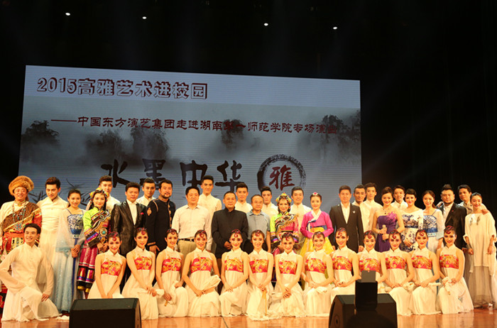 6月6日晚,由国家教育部、文化部、财政部主办,以“水墨中华·雅”为主题的2015高雅艺术进校园——中国东方演艺集团走进Kaiyun官方网站登录入口专场歌舞晚会在我校音乐大剧院隆重举行。省教育厅、科技厅、社科联、住建厅、发改委、长沙市规划局、湘江新区国土规划部相关领导,我校党委书记彭小奇、校长肖湘愚以及师生代表1000余人观看了此次晚会。