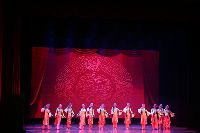 整个晚会分为上下半场,上半场在女子群舞《茉莉花开》唯美舞姿中拉开序幕,青年艺术家的动人舞姿将花的品德、花的气质、花的情致、花的典雅尽情展现。飘逸洒脱的男子群舞《水墨天书》则将水墨画的意象搬上舞台,在浓墨重彩间广舒长袖霓裳羽衣,创造了一种浓厚独特的中国古典氛围;女歌手王涓爱带来的一曲《芦花》宛转悠扬,令人陶醉;青年演员徐鹏演唱的《天路》、《父母在、家就在》唱出了青年人的自信、豪情与孝敬,现场观众点亮手机与歌手互动,整个场面交相辉映、相得益彰;四人舞蹈《梅兰竹菊》演绎了“花中四君子”的“傲、幽、坚、淡”,将四君子超凡脱俗的品格在舞蹈动作中得以体现。下半场古色古香的中国民族舞——男子群舞《太阳部落》、朝鲜族歌舞《桔梗谣》、蒙古族歌舞《鸿雁》、藏族歌舞《康定情》、维吾尔族歌舞《天山放歌》以及原汁原味的民族音乐——男声独唱《爱人》等节目将我国各民族歌舞的艺术魅力展现得淋漓尽致。最后,晚会在一曲气势磅礴的大型舞蹈《盛世鸿姿》中落下帷幕。整场晚会精彩纷呈、高潮迭起,观众不时报以热烈掌声,最后更是起立长时间鼓掌向艺术家们致敬。中国东方演艺集团青年艺术家们清新、淡雅、流畅的表演,为观众们带来了一场视听盛宴,将所有观众的注意力都引至歌、舞、乐本体所创造的独有艺术氛围中,让同学真正走进并了解高雅艺术,深刻体会到了高雅艺术的魅力所在。