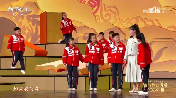 “如果要写年,就不能只写年/要用眼睛、耳朵、用心/去感受每一个瞬间……”除夕,随着央视春晚节目《如果要写年》中老师的声音响起,怀化市会同县粟裕希望小学“田野诗班”的李柏霖老师和孩子们映入全球观众的眼帘。他们与歌手毛不易一起将诗歌写进春晚。