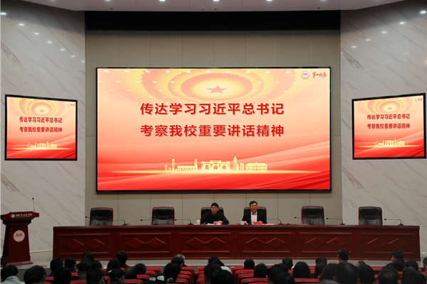 罗成翼强调,学习宣传贯彻习近平总书记考察我校重要讲话精神是当前和今后一个时期全校的首要政治任务。要加强组织领导,按照省委和学校党委的统一部署,分阶段扎实推进,确保不折不扣落实到位。一是全面抓好学习研讨。领导干部率先学、教职员工深入学、青年学生全员学,利用党委理论学习中心组、党组织生活会、班团活动等多种形式,推动习近平总书记重要讲话精神进课堂、进师生头脑。二是切实加强宣传阐释。深入师生广泛开展宣讲,组织开展专题研讨、撰写理论文章,发挥校园网、校报、学报、公众号等阵地作用,全方位解读宣传习近平总书记重要讲话精神,做到人人知晓、直抵人心。三是融会贯通一体推进。把学习宣传贯彻习近平总书记重要讲话精神,与学习贯彻习近平新时代中国特色社会主义思想、学习贯彻党的二十大精神、持续巩固拓展主题教育成果结合起来,联系学校发展实际和本单位工作实际一体谋划、一体推进、一体落实,在全校范围内迅速兴起学习宣传贯彻的热潮。