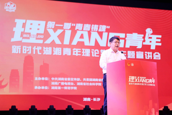 4月16日,“理XIANG青年”第一季青春铸魂新时代湖湘青年理论学习主题宣讲会在我校田汉剧场举行。共青团湖南省委书记李志超、校党委书记罗成翼出席活动并致辞。省委宣传部、湖南日报社、湖南广电集团、湖南省社科院及我校相关部门负责人出席。