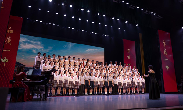 晚上7时整,合唱比赛正式拉开帷幕,来自15个学院的参赛队伍盛装亮相。初等教育学院代表队以《一师你好》的欢快旋律开场,瞬间点燃现场氛围;音乐舞蹈学院代表队以歌声传递情感,用旋律描绘梦想,将此次合唱比赛推向高潮。智能制造学院代表队首次在校内舞台上一展风采,他们铿锵有力的歌声,赢得了观众的阵阵掌声。文学与新闻传播学院代表队用歌声演绎传奇故事,他们的表演展现了学子的才华与情怀。