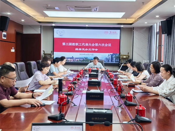 6月21日下午,我校第三届教职工代表大会第六次会议提案交办工作会在东方红校区百熙楼713会议室召开。校党委副书记、校长胡穗出席,校工会负责人、第三届教代会提案工作委员会全体委员、相关提案承办部门负责人参加了本次会议。会议由校工会常务副主席袁向荣主持。
