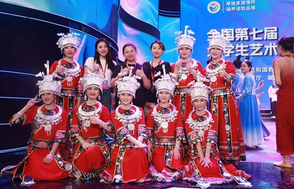 我校在这场艺术盛宴中创下历史佳绩,《山村的笑》获艺术表演类声乐一等奖;《待到山花烂漫时》《凤凰涅槃》分别获艺术表演类舞蹈二等奖、朗诵二等奖;书法作品《世说新语·德行》获艺术作品类一等奖;《UIS美育课程建设共同体的构建与实践——以高师美术学科教学论课程为例》和《美育浸润特殊儿童,赋能新文科人才培养——“手可摘星辰”音乐戏剧疗愈公益团队的生成与实践》获美育改革创新优秀案例一等奖;《高校公共艺术课程线上分层线下分组的混合式教学模式探索与实践——以省级一流课程<数字图像处理PHOTOSHOP>为例》获美育改革创新优秀案例三等奖。