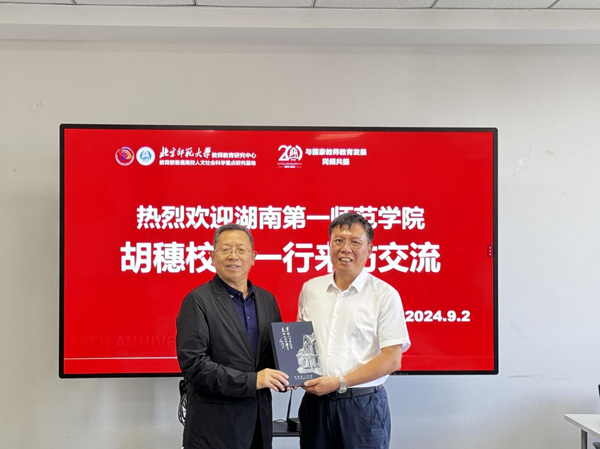其间,胡穗一行前往北京师范大学教师教育研究中心,就双方合作和设立湖南分中心相关议题与北京师范大学教育学部部长、教师教育研究中心主任朱旭东等进行了深度洽谈。