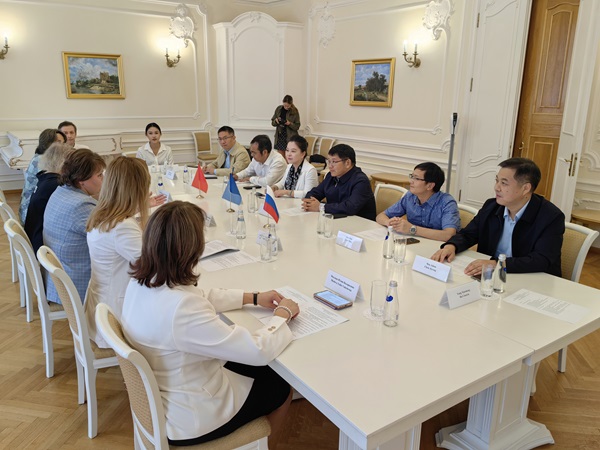 在长期合作的友校乌里扬诺夫斯克国立师范大学,该校校长伊戈尔·奥列戈维奇热情接待我校代表团。双方举行座谈会就进一步加深和拓展两校教育合作展开深入交流。罗成翼表示,两校既同属伟人摇篮又同属师范院校,自签署合作协议以来,双方在教育文化领域进行了深入、密切、多元的交流合作,并取得了良好的成效。希望通过此次访问,两校能进一步发挥各自优势与特色,开展更深层次、更宽领域、更大格局的合作,为两校的发展赋能,为中俄的友谊助力。我校代表团表达了共建中俄语言文字推广基地、开拓教师访学和联合办学项目等合作意向。伊戈尔·奥列戈维奇表示,双方通过过去的校际合作取得了丰硕成果,两校关系愈发密切,希望两校继续携手开展语言文字推广基地、教师访学、联合办学等项目,推动合作纵深发展,通过互通有无推进两校教育教学改革,提升双方的教育教学和人才培养水平,培养在全球化时代更具竞争力的国际化高素质人才。会议最后达成共识,双方续签了学生交换协议。