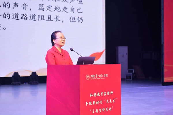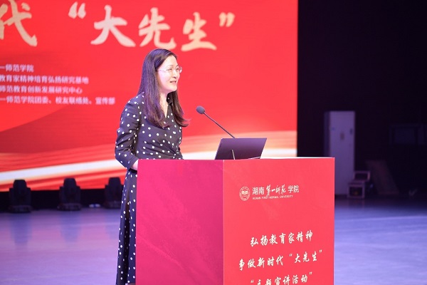 10月12日,由湖南省教育家精神培育弘扬研究基地、新时代师范教育创新发展研究中心、校团委、校友联络处、宣传部共同承办的“子任论坛之百名校友进校园——弘扬教育家精神,争做新时代‘大先生’”主题宣讲活动在东方红校区田汉剧场举行,5位优秀校友分享了自己的教育故事与感悟。校党委副书记、校长胡穗出席活动并颁发聘书,校党委委员、副校长蒋蓉出席活动并讲话。