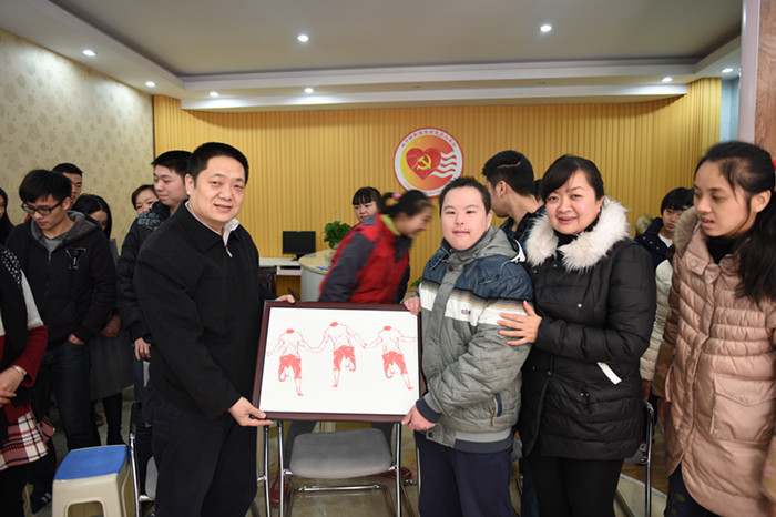 1月19日上午,长沙坡子街街道慧灵馨园关爱中心内笑声朗朗,其乐融融,洋溢着温馨和谐的氛围。我校美术与设计学院学生志愿者与长沙市坡子街慧灵馨园关爱中心的学员交流活动在此举行,我校校长肖湘愚,宣传部、团委等有关部门负责人,美术与设计学院学生志愿者指导老师肖弋应邀参加了此次活动。
