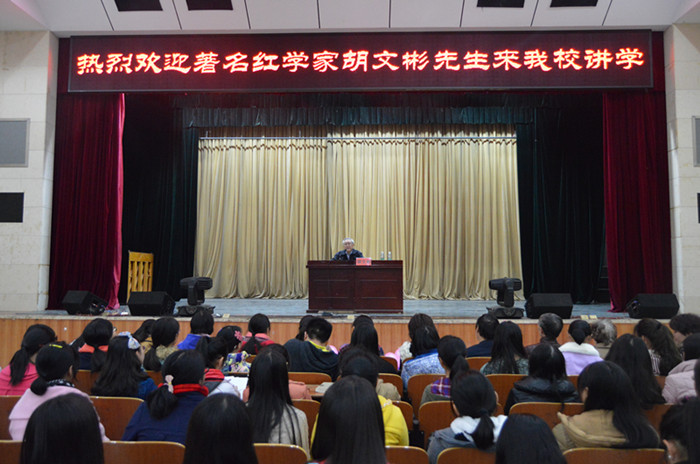 11月24日下午,著名红学家、原中国红学会副会长、现中国红学会顾问胡文彬先生应我校文学与新闻传播学院邀请,在我校东方红校区科技楼演播厅作了一场题为“我们如何读经典”的精彩学术讲座。文学与新闻传播学院党总支书记林光明、院长刘澍心、副院长龙永干及部分师生聆听了讲座。讲座由刘澍心主持。