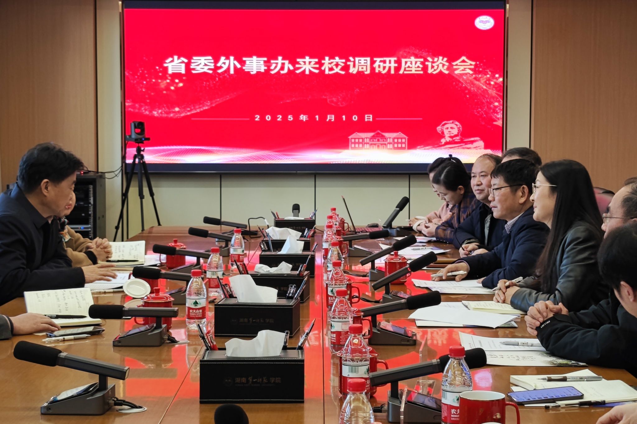 邱爱华对我校在书院文化传播方面的设想给予了充分肯定,并就中心建设的理念、路径、内容等方面提出了诸多极具指导性的意见。他表示,省委外事办将全力支持学校搭建国际合作桥梁,提供包括国际合作办学、国际交流等在内的丰富外事资源,助力讲好“湖南书院故事”,提升湖湘文化的影响力和美誉度。