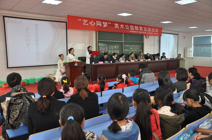今天,我校与虹桥小学联合举行“艺心同梦”美术公益教育交流活动。校领导阳柏苏、刘志敏,高新区教育局、省女画家协会、省青年美术家协会、慧灵社区机构、虹桥小学及我校教务处、美术与设计学院的相关负责人出席活动。