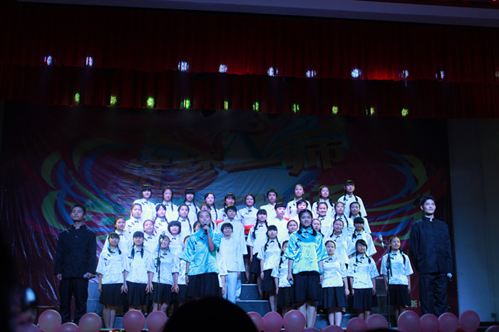 晚会在活力四射的啦啦操《青春飞扬》中拉开帷幕,李晖旭、李程两位老师带来的《为你读诗》用读诗的形式告诉同学们如何度过六年的大学时光;民歌《节日欢歌》唱出了同学们心中的喜悦;舞蹈《春晓》和《可可西里雪莲花》以清新脱俗的舞姿展现了青春的美好;合奏《蝶恋花》极具古典韵味,让观众大饱耳福;朗诵《预言》展现了同学们对美好生活的向往;舞蹈串烧《you and me》表演形式新颖,将古典舞蹈与现代舞蹈完美结合,掀起了晚会的高潮;郭峥、陈丽帆老师表演的器乐二重奏《西班牙斗牛士》配合默契,完美诠释了异域风情;合唱《乘着歌声的翅膀》展现了一师学子昂扬向上的精神风貌;集体朗诵《中华少年》气势蓬勃,激情洋溢;舞蹈《在路上》以新颖的编排形式展现了同学们良好的舞蹈功底;小品《我心飞翔》和三句半《话一师》以幽默的语言和风趣的表演引得全场观众开怀大笑;旷怡、邓昭明老师以一首《老男孩》深情唱出了辅导员心中的苦与乐。最后,两位老师带领学生代表齐跳《小苹果》,再将晚会推向高潮,晚会完美落幕。