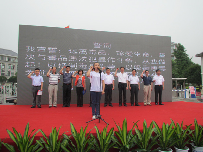 高新区党工委委员、管委会副主任、区禁毒委主任陈大庆,高新区党工委委员、公安分局局长、区禁毒委副主任陈曙光分别发表了讲话。陈曙光说, 6.26是国际禁毒日,我们举行校园无毒阳光生活大型主题禁毒宣传活动,主要目的是以全民宣传日为契机,不断增强广大人民群众特别是青年学生们自学抵制新型毒品的和识毒防毒拒毒的能力,实现校园无毒品、学生不吸毒、后代更健康、民族更强大的总目标。陈曙光指出,高新区禁毒委坚持依法治理、重拳打击,禁毒工作取得了明显成效。但是,由于受国际毒潮泛滥和国内涉毒因素增多的影响,高新区的毒情形势日趋严峻。青年学生必须清醒认识到做好禁毒工作,直接关系到国家的存亡安危中华民族的兴衰强弱,直接关系到中华民族伟大复兴的中国梦能否顺利实现。陈曙光号召全体青年学生用自己的眼睛去观察世界,用自己的头脑去思考问题,携起手来开展禁毒宣传教育,努力实现全国无毒害区县的奋斗目标,真正使校园无毒阳光生活成为所有校园的美好现实。