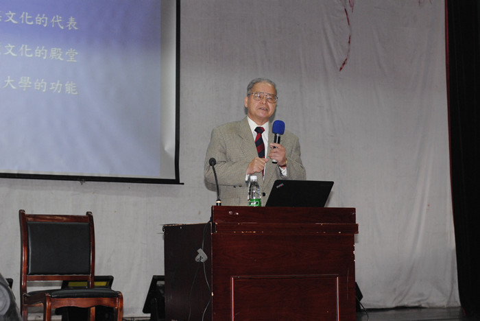 黄教授的报告从“文字是民族文化的代表”入题,指出中国的文字本身是一种艺术,其中蕴含着博大精深的文化内涵,他将传统汉字与外国文字比较,道出我国传统汉字的奥妙。在此基础上,黄坤锦教授阐释了关于“全人教育”的独到见解,认为全人教育的核心理念即“天人物我”之和谐,“全人教育”是将人的内在品质与外在形体及其所属的社会文化予以整合,强调统整性、一致性、整体性的教育。他指出“大学是人类文化的殿堂”、“全人教育是大学的功能”。黄教授认为大学应推行“全人教育”(Holistic Education),他引用Ran Miller的话指出,“全人”的观点在本质上是“精神性”(spiritual)胜于“物质性”(Material)。在“全人教育”中,他强调了“四个平衡”,即专业与通识的平衡、学养与人格的平衡、个体与群体的平衡以及身、心、灵的平衡。