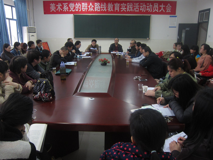 3月27日下午,美术系党的群众路线教育实践活动动员大会在美术楼203会议室召开。校纪委书记阳柏苏、校审计处处长易强、校办公室李辉华出席大会。美术系全体教师党员和学生党员代表参加了大会。大会由系主任范迎春主持。