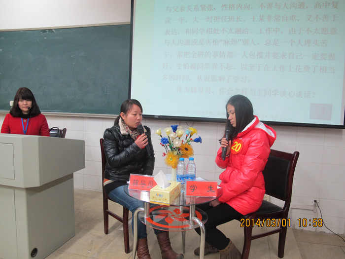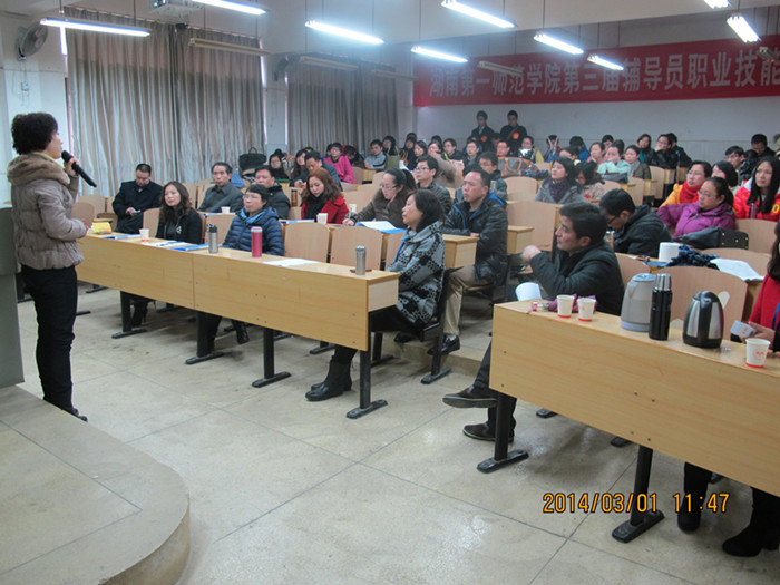 为了深入贯彻落实《中共中央、国务院关于进一步加强和改进大学生思想政治教育的意见》和教育部《普通高等学校辅导员队伍建设规定》(教育部令第24号)精神和湘教工委通[2014]2号文件要求,引领辅导员向职业化、专业化方向发展,3月1日,我校在东方红校区实验楼B栋106教室和206教室举行了第三届辅导员职业技能竞赛初赛。冒着周末严寒恶劣的天气,我校全体在编在岗辅导员精神抖擞、全神贯注参加比赛,各系部党总支书记、副书记担任评委,副校长杨兰英到现场观摩并指导了比赛。