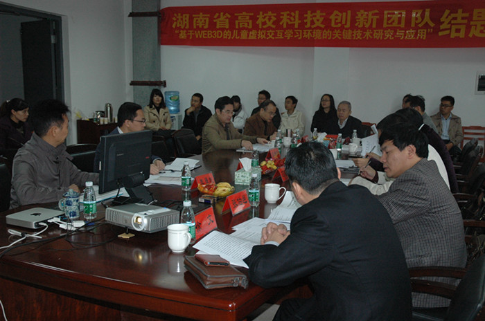 11月22日上午,湖南省教育厅组织专家对我校“基于Web3D的儿童虚拟交互学习环境的关键技术研究与应用”湖南省高校科技创新团队进行验收。验收专家组成员有中南大学信息科学学院副院长施荣华教授、湖南大学软件学院副院长秦拯教授、湖南师范大学教育科学学院信息技术主任张伯邑博士、湖南省电教馆副馆长兼湖南省中小学资源中心主任石福新研究员、广东紫光文样网络有限公司董事长徐文博士。验收会由省教育厅科技处处长郭建国主持。
