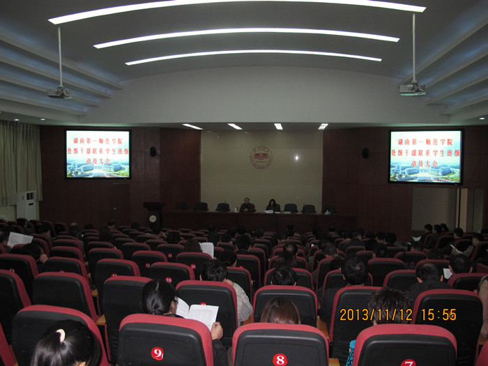 为进一步加强学生思想政治工作队伍建设,密切领导干部与学生的联系,全面促进学生教育、管理、服务工作,11月12日,我校在东方红校区科技楼视频会议室召开处级干部联系学生班级动员大会。校党委书记彭小奇、副校长杨兰英、全体处级干部出席大会。