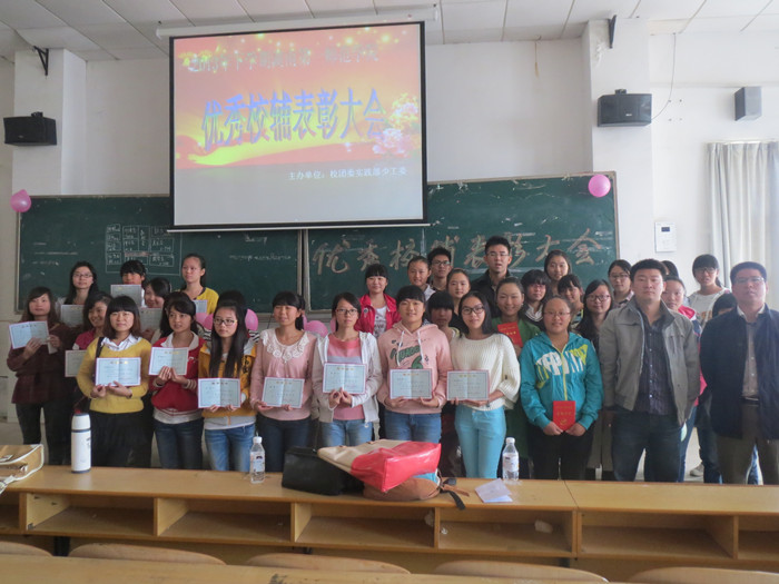 10月23日中午,我校2012-2013学年校外辅导员工作总结表彰大会在东方红校区实验楼C栋201隆重举行。校团委副书记赵小群、杜毅老师,校团委实践部、少工委学生干部、各系团总支实践部学生干部,以及校外辅导员代表400余人参加了会议。
