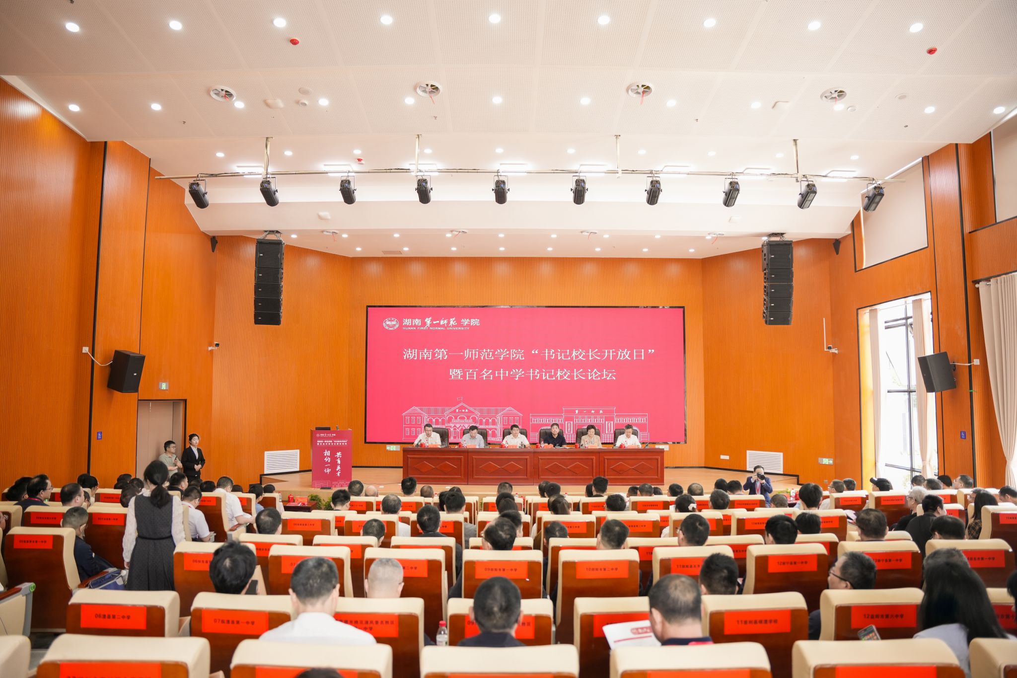 为深入贯彻落实新时代教育强国战略部署,创新构建高中高校协同育人长效机制,4月26日,我校在东方红校区教学科研大楼举行“书记校长开放日”暨百名中学书记校长论坛。湖南省教育厅一级巡视员柴世钦、学生处处长周韶峰,我校党委书记罗成翼,党委委员、纪委书记李昱,党委委员、副校长彭晓辉,副校长石元泉,以及来自省内120多所高中学校负责人出席活动,共话立德树人新篇,共育报国强国栋梁。开幕式由彭晓辉主持,论坛由石元泉主持。