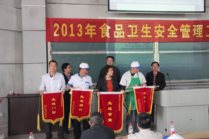 刘宇宣读了2012年度表彰决定并就2013年学院如何确保饮食安全发表了重要讲话。刘宇在讲话中充分肯定了我院2012年食品安全工作取得的成绩,并要求餐饮工作人员在2013年继续坚持以人为本的服务宗旨,牢固树立安全第一的意识,切实努力维护师生的利益,共同把我院的后勤饮食服务和食品安全工作推上新的台阶。