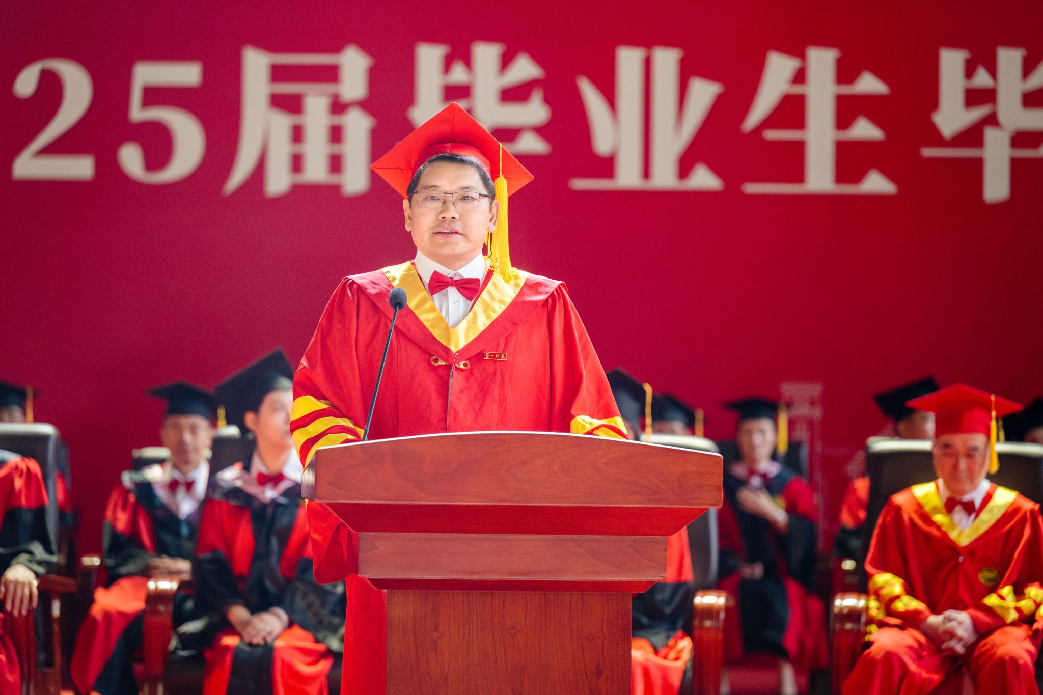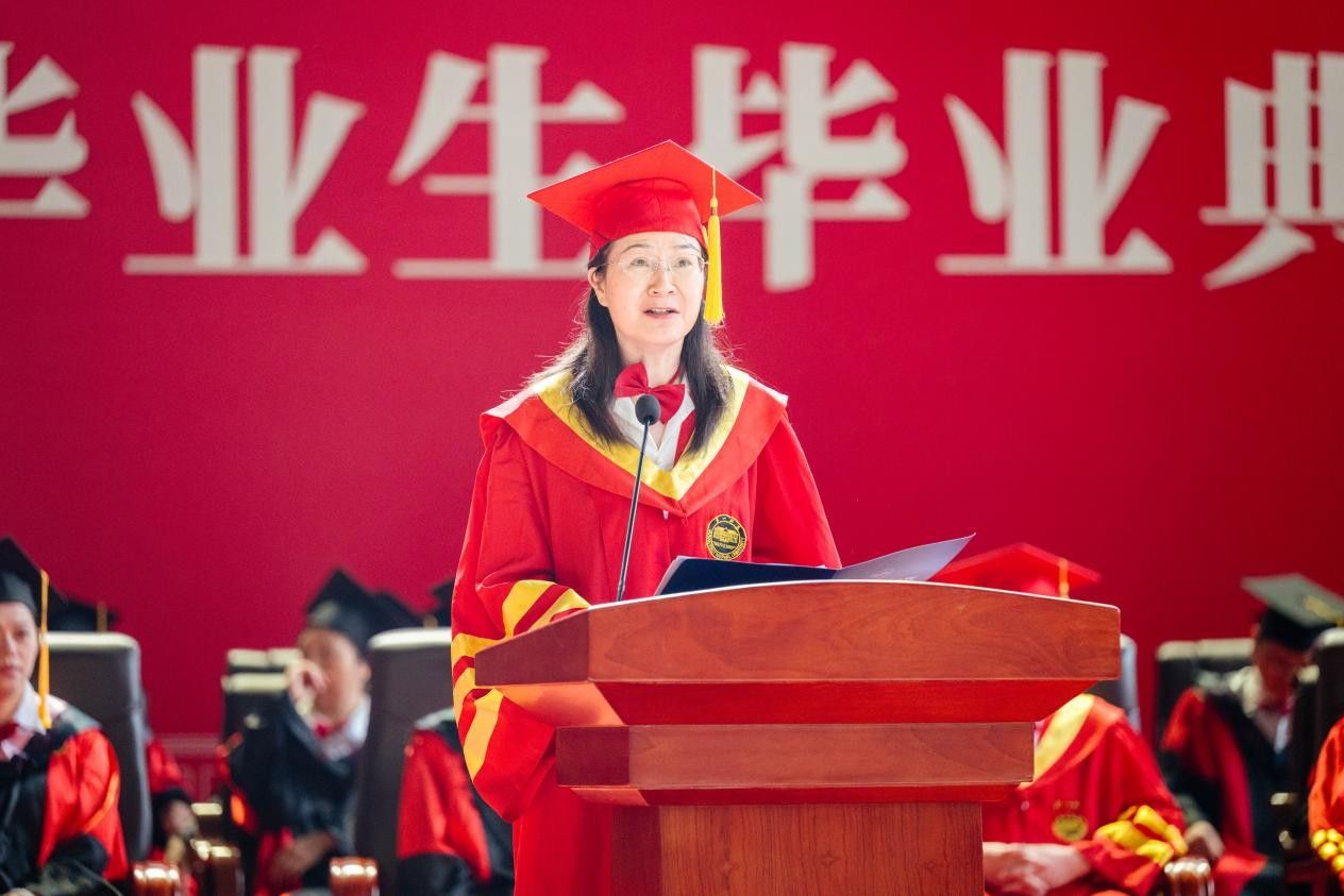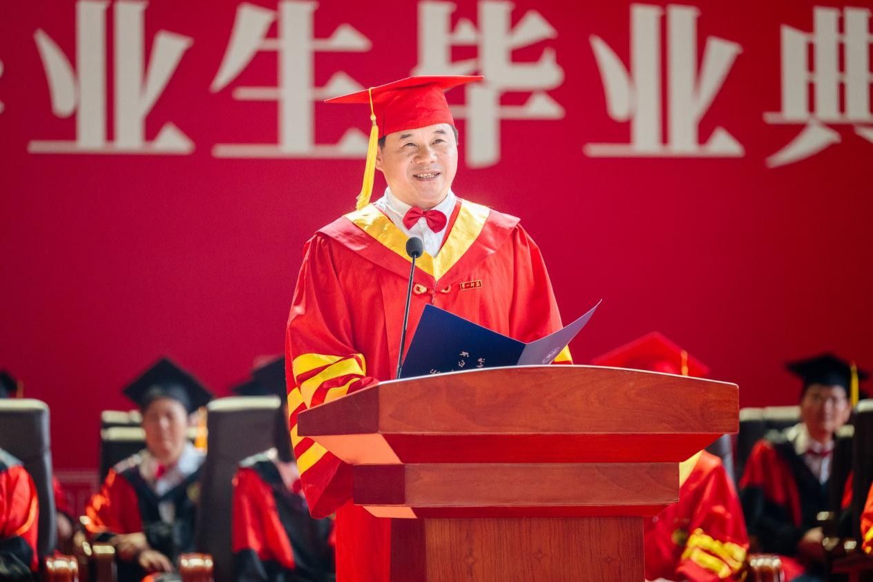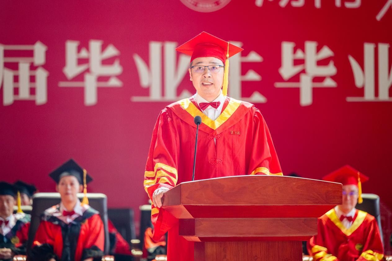 6月12日,我校2025届毕业生毕业典礼暨学位授予仪式在东方红校区综合体育馆举行。校党委书记罗成翼教授致辞。全体校领导、主礼教授、教师代表、校友代表及部分家长代表齐聚一堂,共同见证4686名毕业生顺利完成学业,踏上崭新征途。校党委委员、副校长彭晓辉主持毕业典礼。