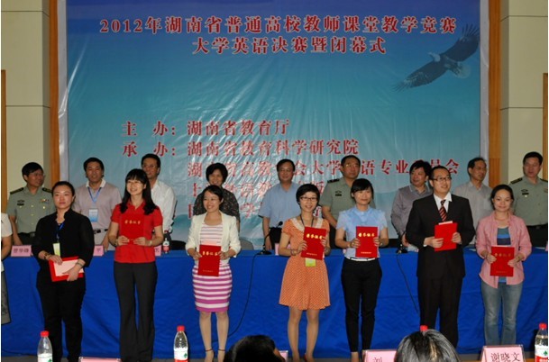 6月2日,2012年湖南省普通高校教师大学英语课堂教学竞赛决赛在国防科技大学举行。经过激烈角逐,我院外语系周敏老师和公共外语教学部易敏老师荣获一等奖,充分展示了我院外语教学的实力和外语教师的风采,为学院赢得了荣誉。