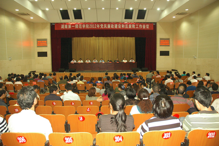 纪委书记阳柏苏作2012年党风廉政建设和反腐败工作报告。阳书记传达了省纪委、省教育纪工委主要会议精神,对我院2011年党风廉政建设和反腐败工作进行简要回顾,对我院2012年党风廉政建设和反腐败工作进行了全面部署。阳书记指出:我院2012年党风廉政建设和反腐败工作要以贯彻落实科学发展观、中纪委、省纪委、省教育纪工委会议精神为主要任务,以标本兼治、综合治理、惩防并举、注重预防为总体方针,以大力开展“党风廉政建设制度完善和落实年”活动为主题,以切实解决师生反映的热点难点问题为工作重点,以落实党风廉政建设责任制为总体目标,努力构建我院惩治和预防腐败体系,为学院健康持续发展提供保障。具体工作是:一是严明政治纪律,切实保障各项重大部署落实到位;二是深入开展宣传教育,不断增强干部、教师的廉洁意识;三是建立和完善各项规章制度,加强对制度执行情况的监督检查;四是以落实党风廉政建设责任制为抓手,完善反腐倡廉责任体系;五是加强对重点部位、重点人员和关键环节的监督与检查,加大从源头治理腐败的力度;六是狠抓作风建设,努力建设“学习型、服务型、和谐型、清廉型”干部队伍;七是认真处理来信来访,继续加大查办案件工作力度;八是不断加强纪检监察自身建设,确保反腐倡廉建设各项工作落到实处。