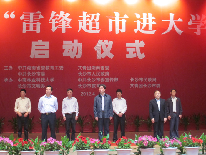 4月28日上午,省会长沙“雷锋超市进大学”活动启动仪式在中南林业科技大学举行。省委常委、长沙市委书记陈润儿,省教育厅副厅长申纪云,团省委副书记罗琼,首批十个“雷锋超市”所在高校领导、雷锋超市负责人、学生志愿者代表2000余人出席仪式。我院团委副书记罗祥云率学生志愿者代表参加了活动。仪式由长沙市委副书记张值恒主持,陈润儿发表重要讲话并宣布省会长沙“雷锋超市进大学”活动正式启动。