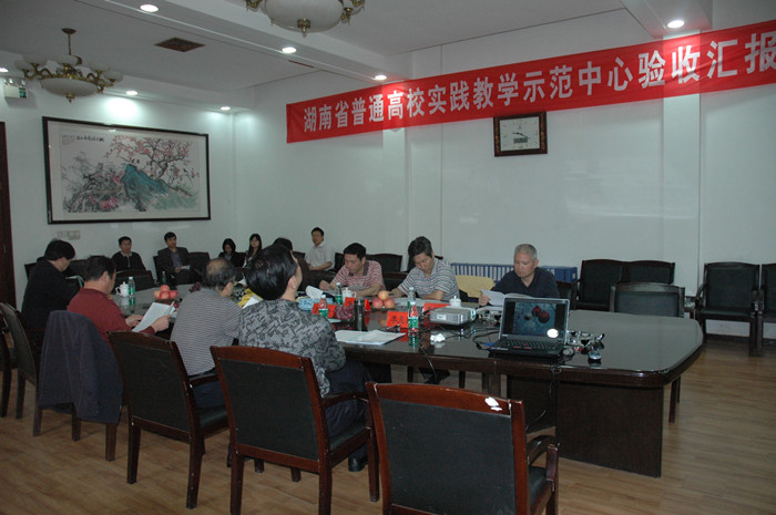 4月25日,省教育厅高教处副处长张平、湖南师范大学教务处副处长于风江、湘潭大学实验室及设备管理处处长刘建州、长沙学院教务处副处长李国锋一行4人来我院,对我院省级实践教学示范中心建设单位“小学教育信息技术实验中心”进行全面的考察验收。验收评估汇报会在我院东方红校区办公楼会议室举行。院领导彭小奇、刘志敏、李克勤及相关部门负责人和实验中心教师参加了会议。汇报会由副院长刘志敏主持。
