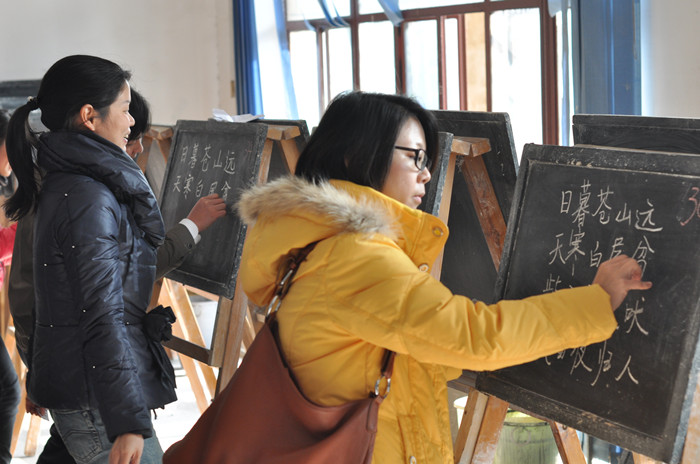 本次大赛选取了教师口语和书写两项最基本的教学技能进行比武。每位参赛青年教师都要进行抽题即兴演讲和粉笔字书写的展示。科学教育教研室的范增老师运用生动的事例辩证地分析了“用善良的方法教育人”的观点;科学教育教研室的莫敏老师认为要以学生为本、回归学生,从而实现“要做人民的先生,先做人民的学生”;艺术教研室的许芸芸老师结合自身经历,告诉大家教育孩子应该包容、相信、理解和尊重,教育应该从心灵开始,给予学生爱的滋润;语文教研室的杨昭昭老师从爱学生和自身能量的塑造两个方面描述了心中名师的标准;艺术教研室的易文颖老师则引用美国著名教育家彼得·G·贝德勒的名言阐释了教师的价值。参赛老师们鲜明的思想观点、较高的语言素养以及得体的形象气质给观众们流下了深刻的印象,赢得阵阵掌声。经过激烈角逐,李金国、杨昭昭老师获得一等奖,易文颖、申哲辉、兰华、肖翔老师获得二等奖,范增、郑敏、姚姚、龙昱冰老师获得三等奖。