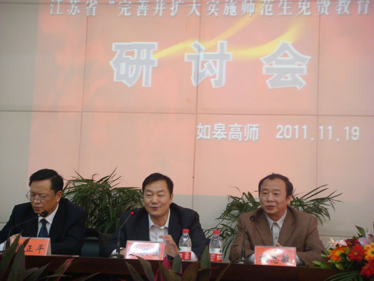 11月19日,江苏省“完善并扩大实施师范生免费教育”研讨会暨南通市五年制免费师范生定向培养工作汇报活动在如皋高等师范学校隆重举行。教育部师范司教师培养处处长于兴国、儿童教育家李吉林及江苏省教育厅、江苏教育学院和南通市委、市政府、市人大等领导与专家参加会议。我院刘志敏副院长应邀出席,教务处、教育科学系相关负责人陪同参加。