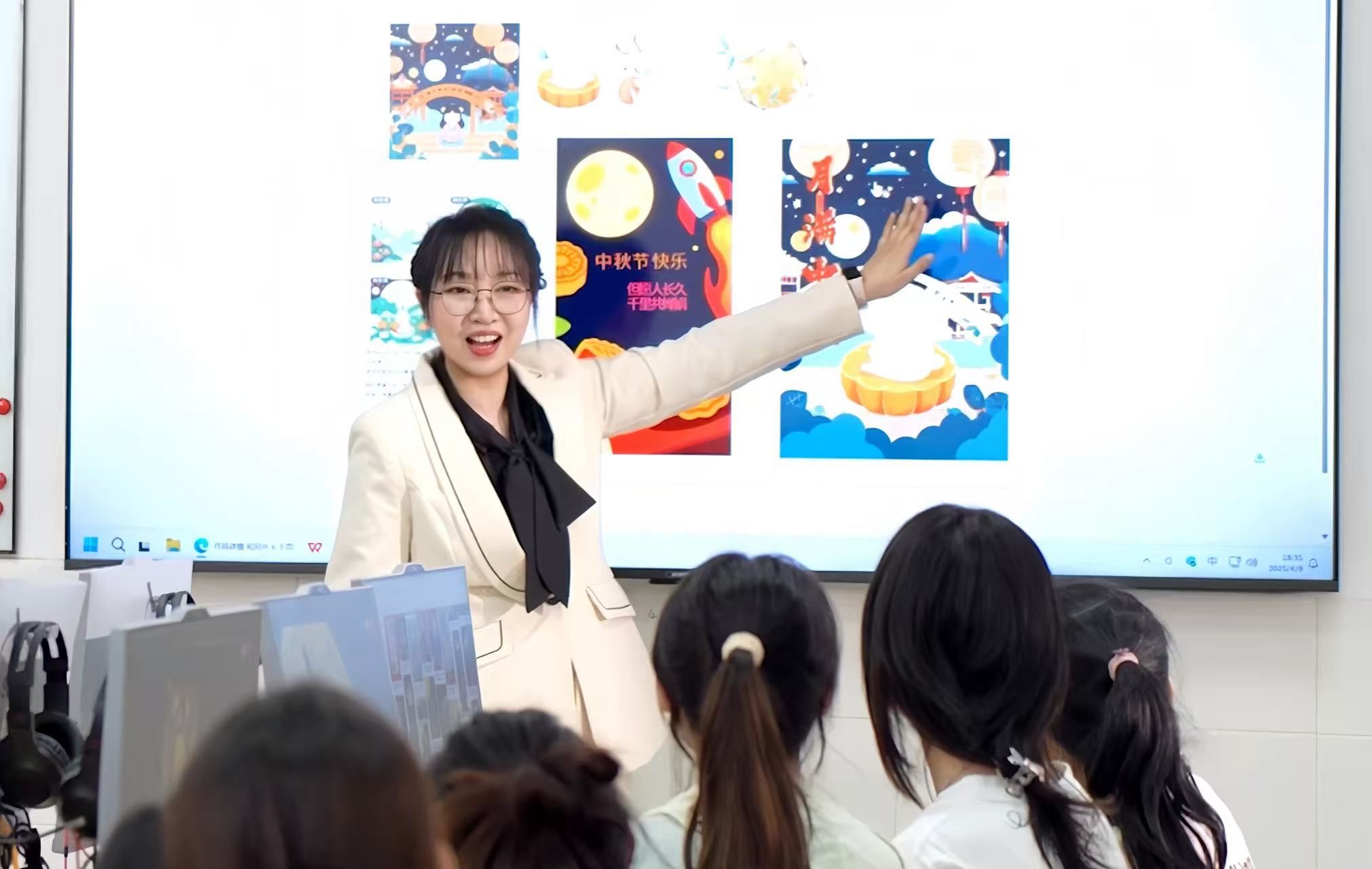 在课程中,杨蓓老师常常将中国画的传统东方美学与现代设计思维结合,引导学生用“留白”“虚实”等东方智慧创作数字作品。2021级视觉传达设计专业学生刘慧钦佩地说道:“杨蓓老师总能把看似矛盾的传统与现代、艺术与技术,巧妙地融合在一起。”